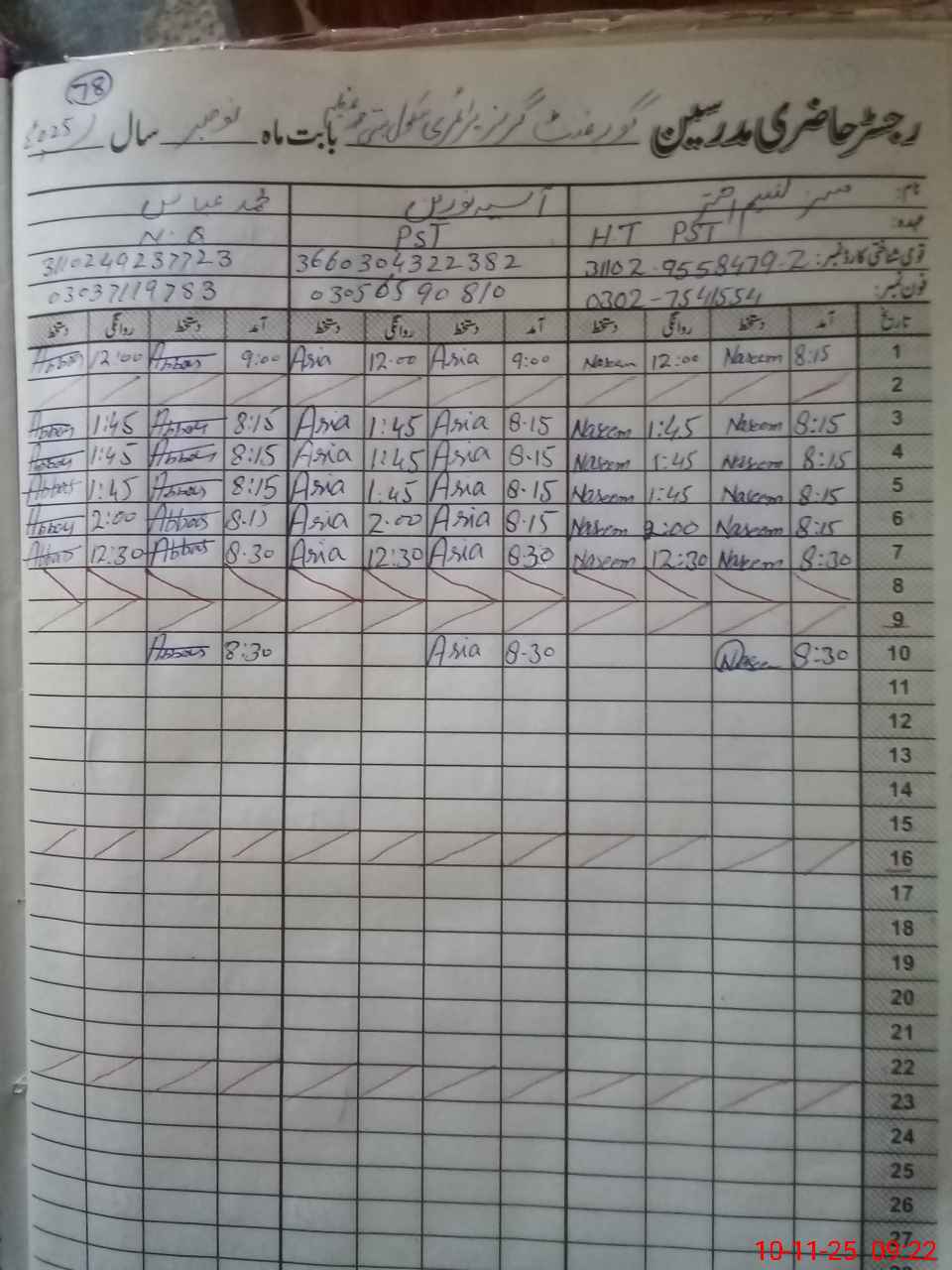 | Name: NA**** AK**** Designation: (School Headmaster's/Headmistress's) PST HT Phone/Cell Number: 03**** |