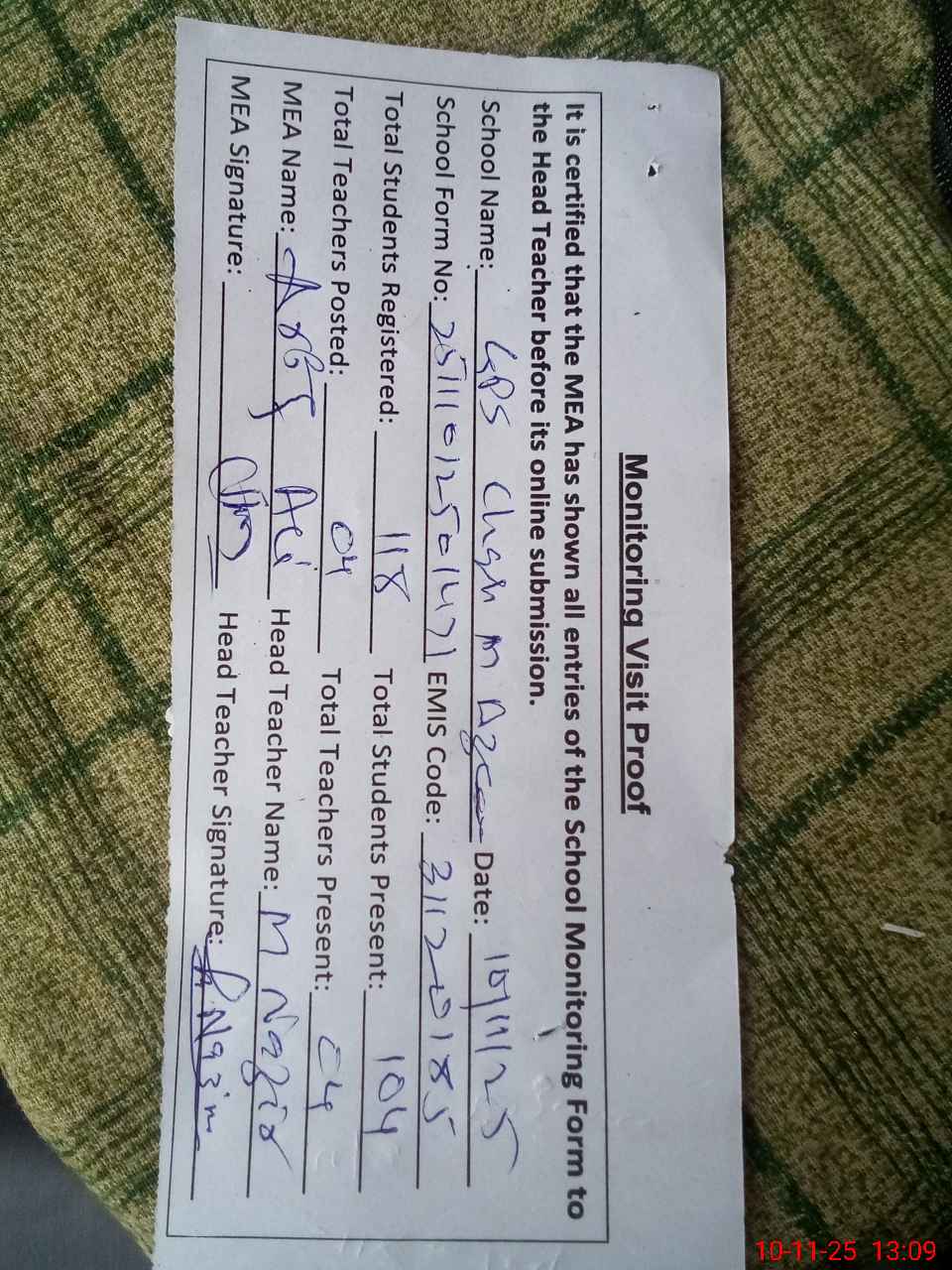 | EMIS Code: 31120185 | Name of School: GPS CHAH MUHAMMAD AZEEM | |||