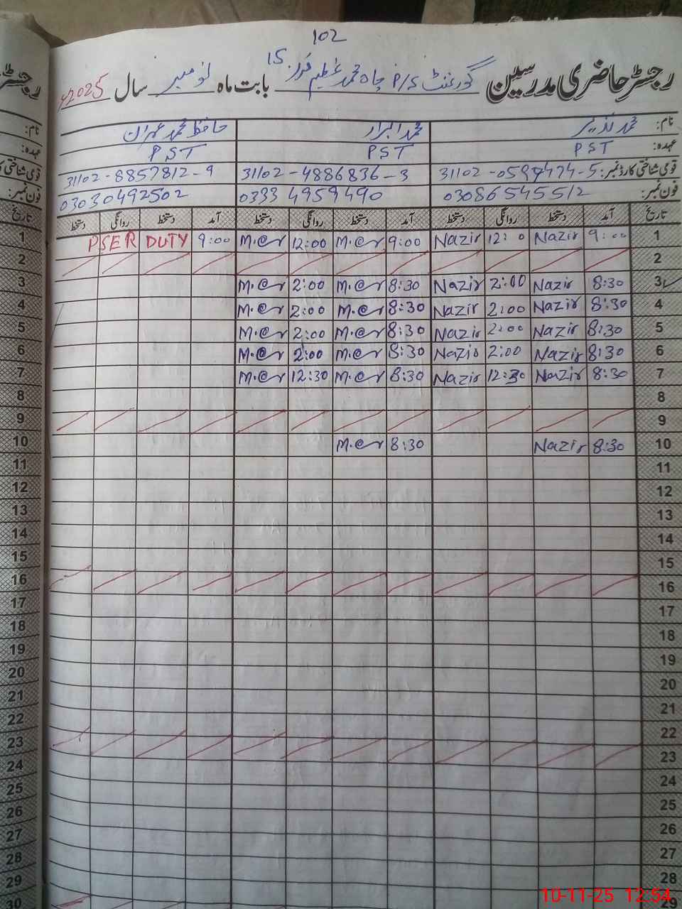 | Name: MU**** NA**** Designation: (School Headmaster's/Headmistress's) PST Phone/Cell Number: 03**** |