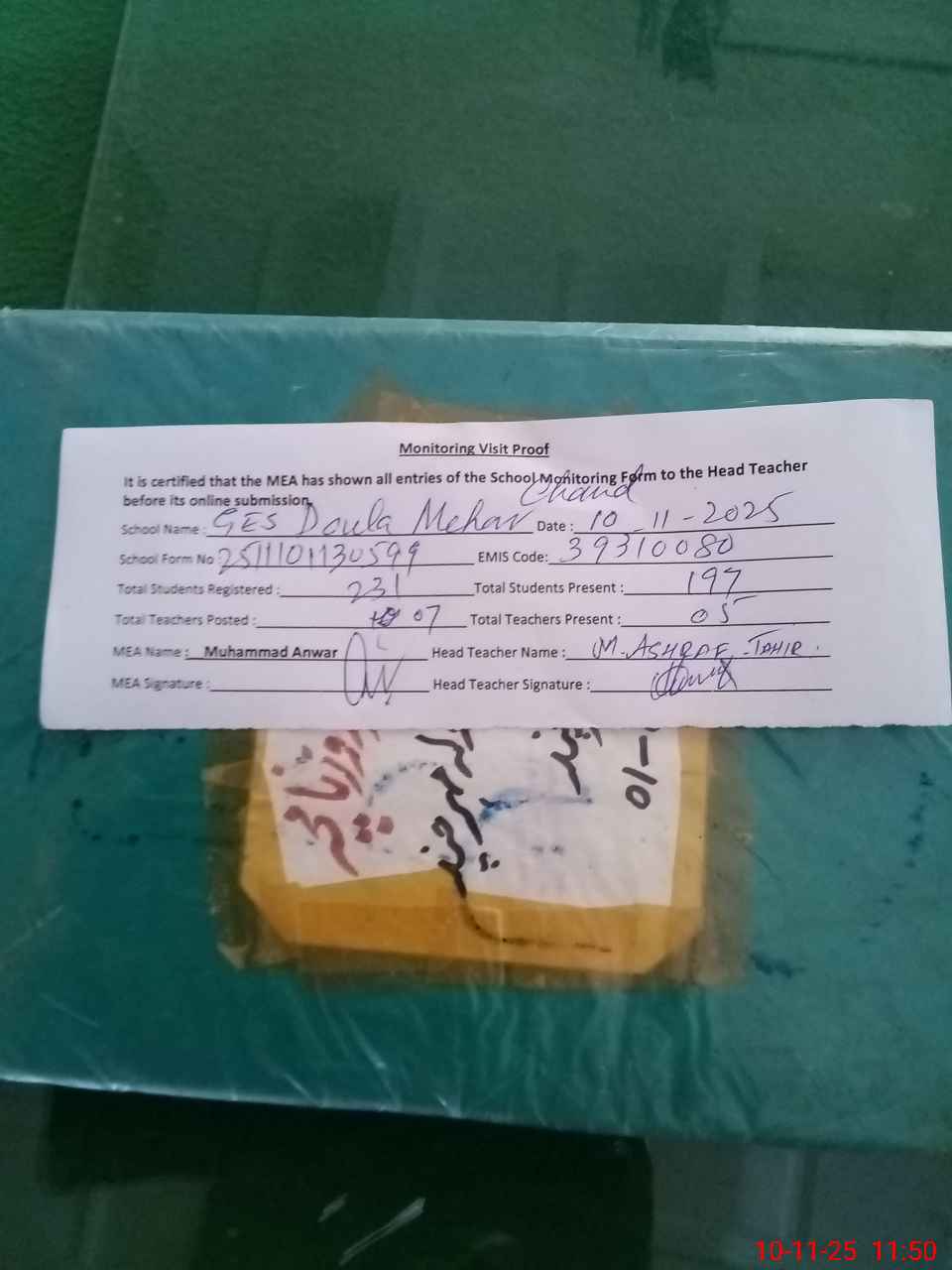 | EMIS Code: 39310080 | Name of School: GES DOULA MEHAR CHAND | |||