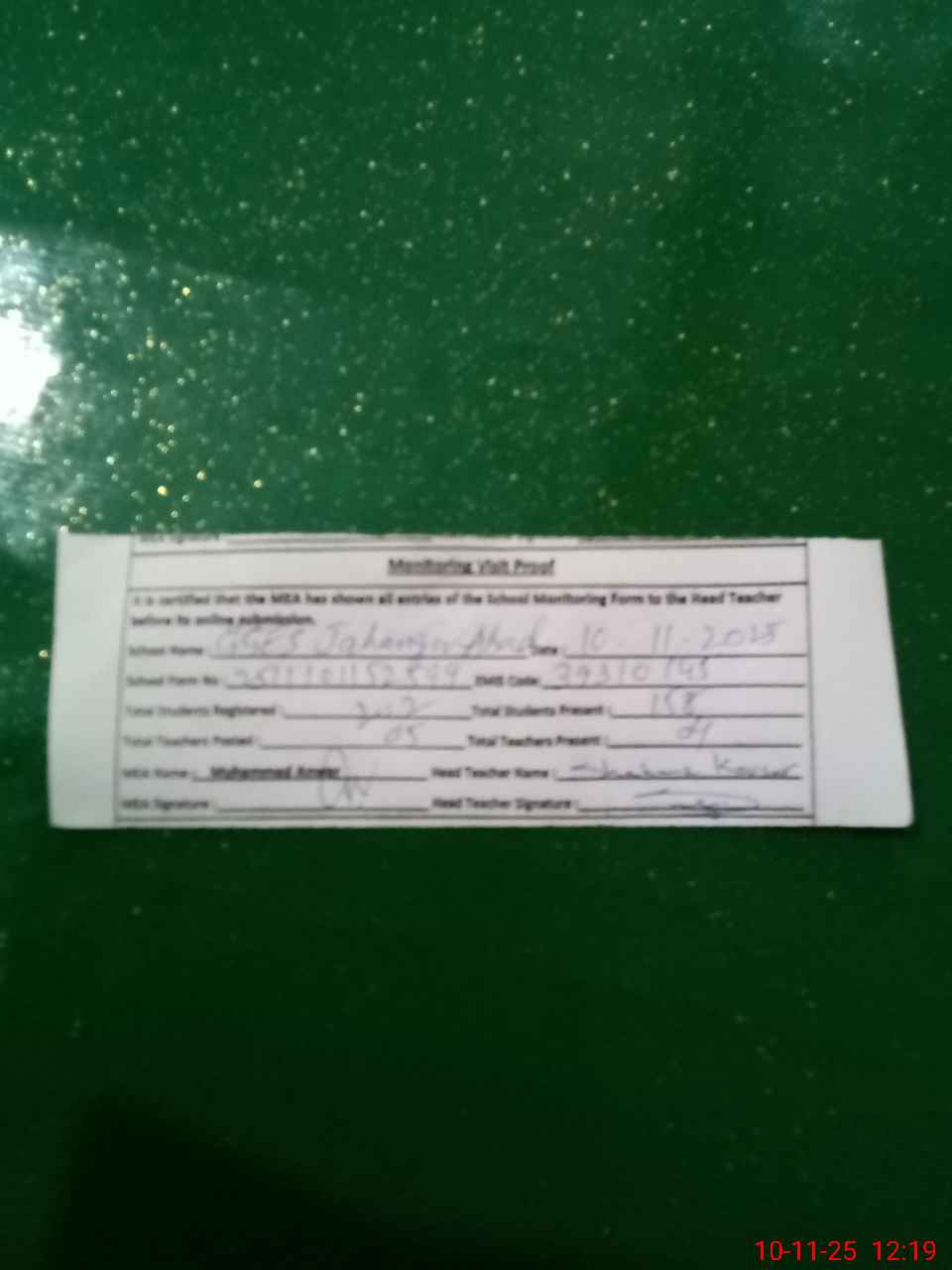 | Certified that this School was Inspected by the Undersigned MEA/DMO Today and the Information Stated Above is as Per Record. | |||||
