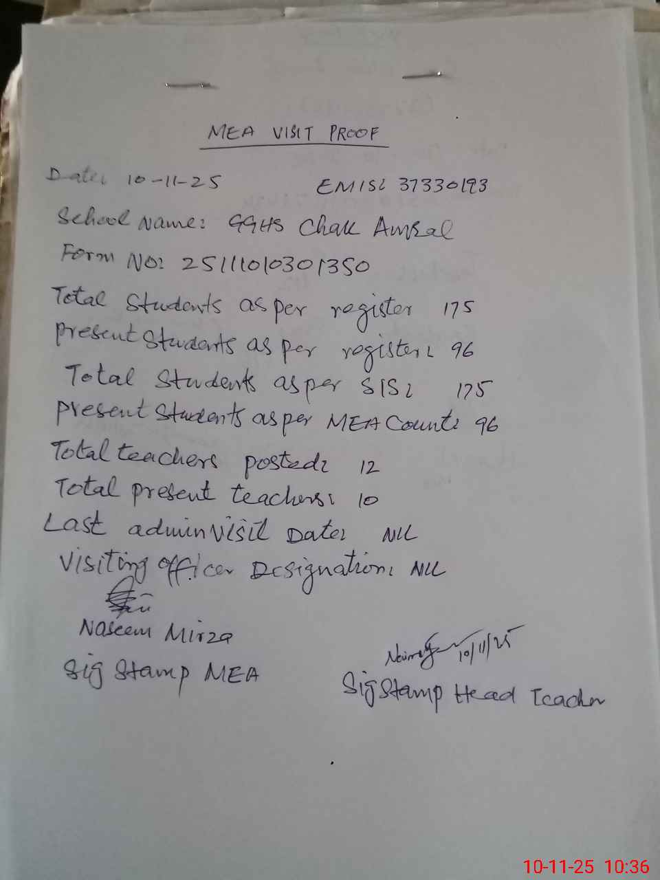 | EMIS Code: 37330193 | Name of School: GGHS CHAK AMRAL | |||