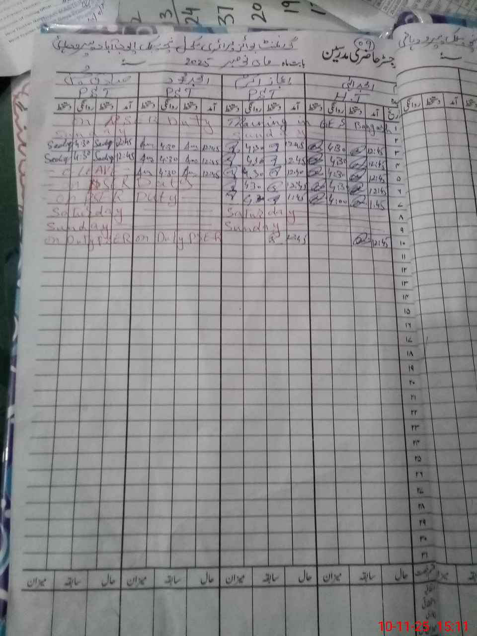 | Leave | Duty | Absent | Maternity | Medical | Ex- Pak |