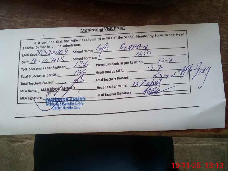 | EMIS Code: 32320104 | Name of School: GPS RAKHAN | |||