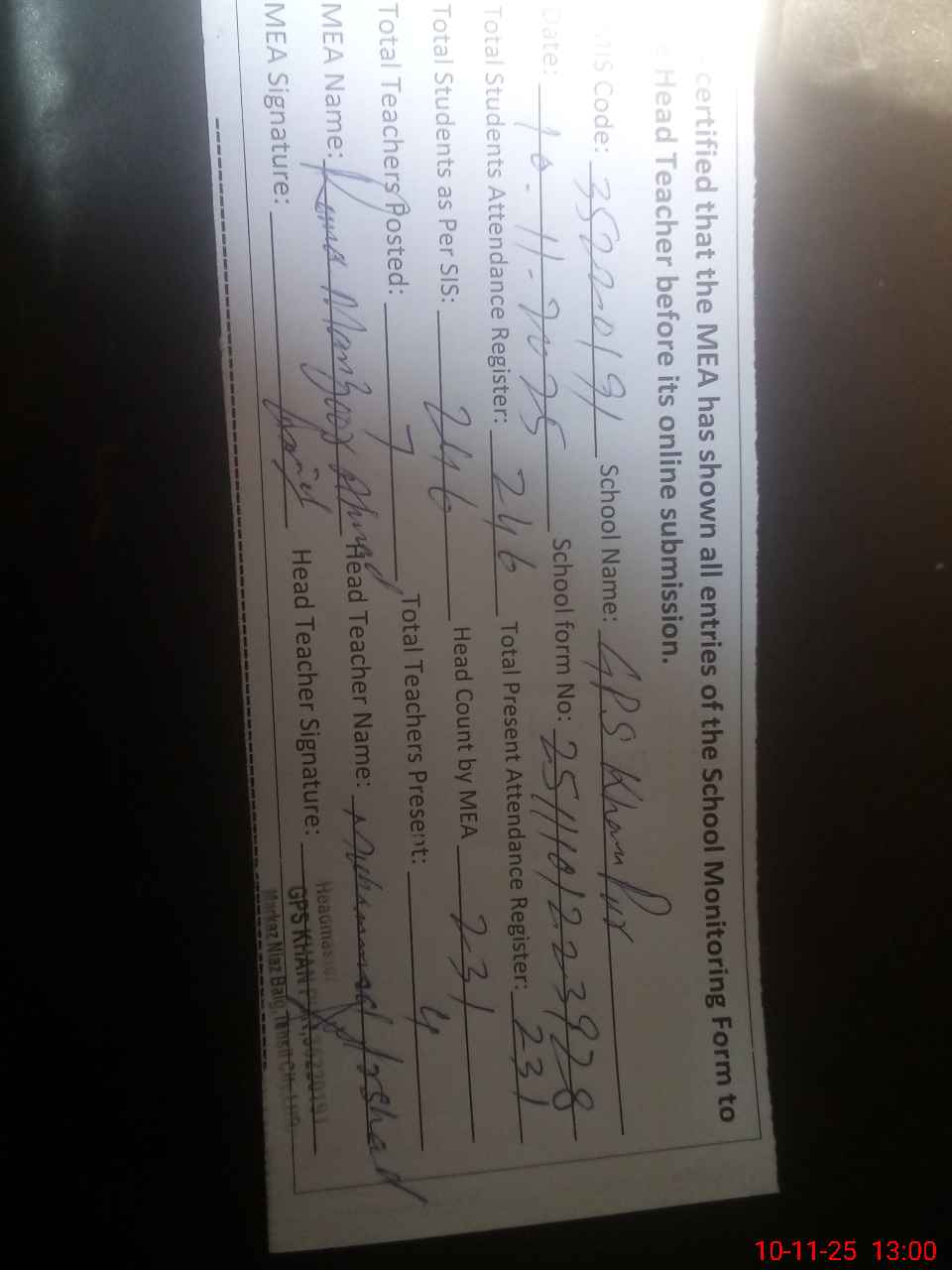 | EMIS Code: 35220191 | Name of School: GPS KHAN PUR LAHORE | |||