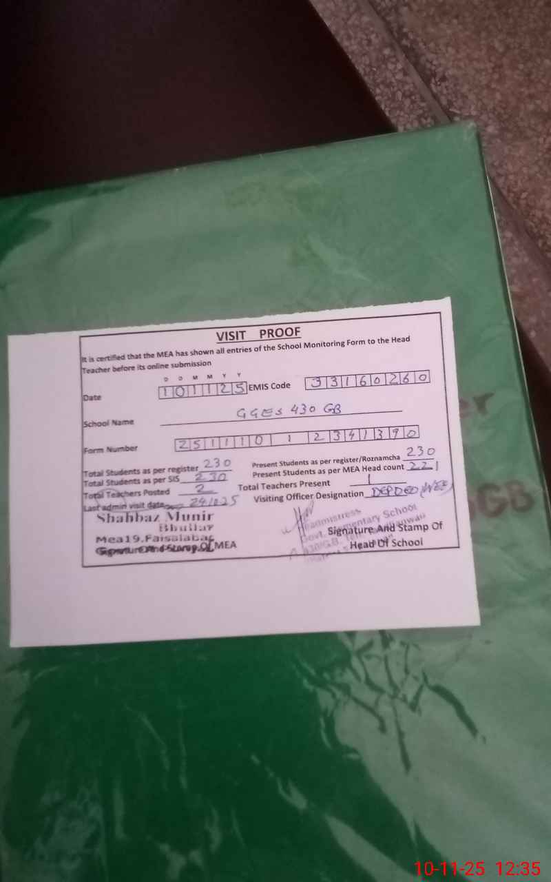 | Certified that this School was Inspected by the Undersigned MEA/DMO Today and the Information Stated Above is as Per Record. | |||||