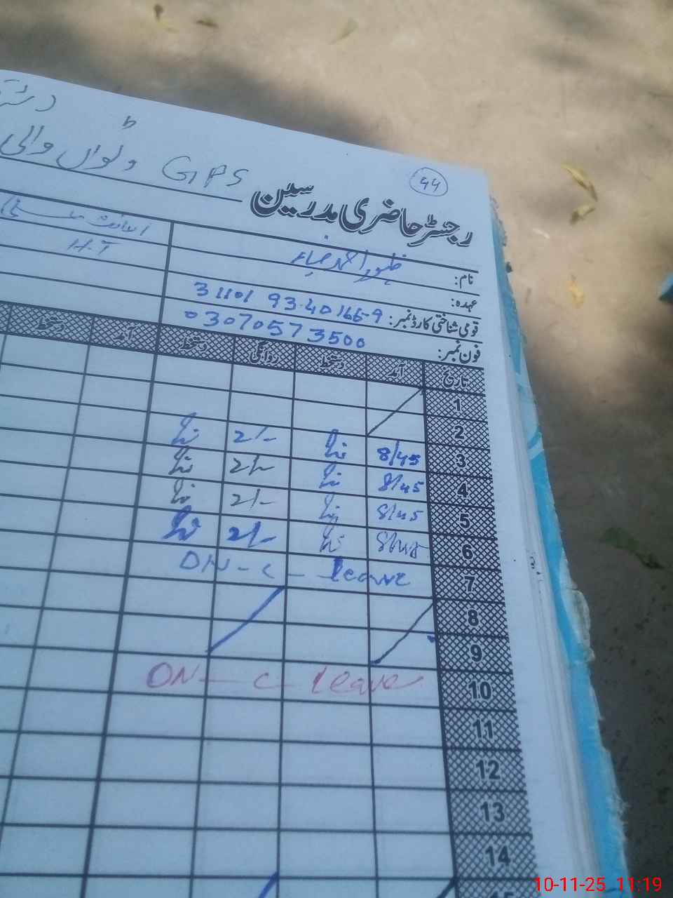 | CNIC | Full Name | Designation | R/C | Absence during last cal. month |