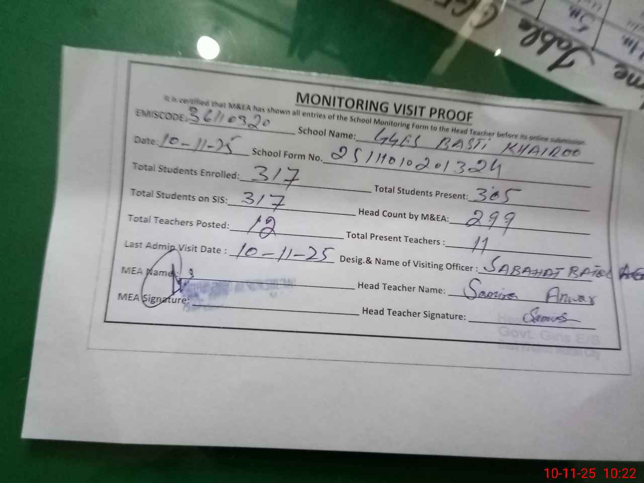 | Certified that this School was Inspected by the Undersigned MEA/DMO Today and the Information Stated Above is as Per Record. | |||||
