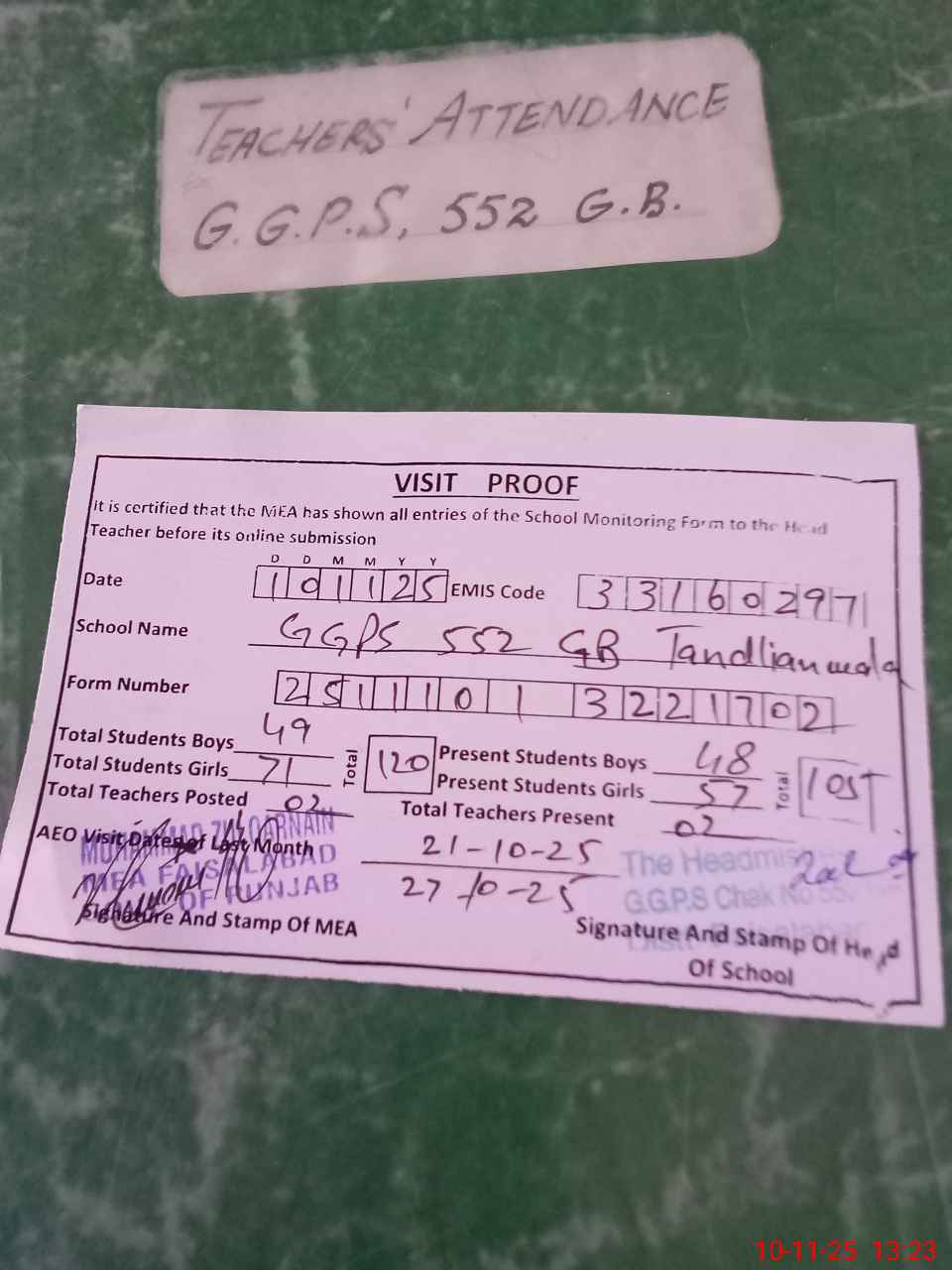| EMIS Code: 33160297 | Name of School: GGPS CHAK 552 GB MAMUNKANJAN | |||