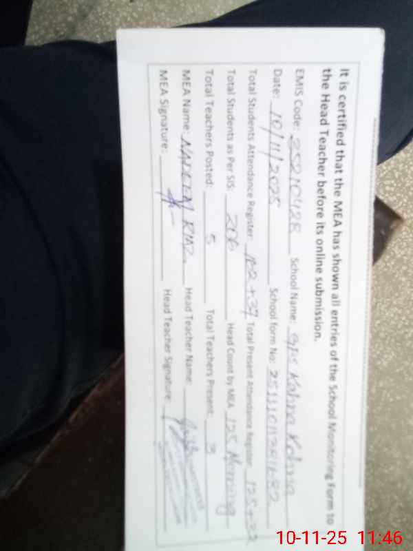 | Attendance Register | Head Teacher | MEA with School | Visit Proof |