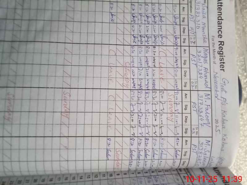 | CNIC | Full Name | Designation | R/C | Absence During Last Calender Month |