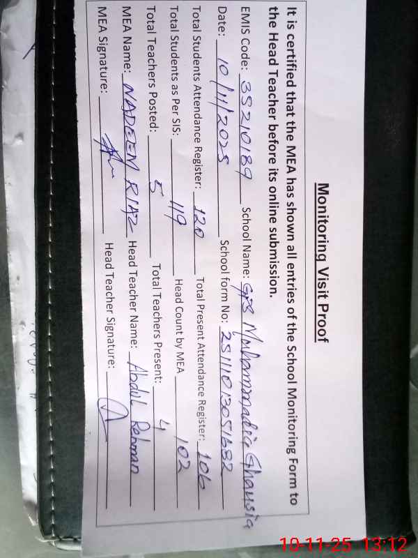 | EMIS Code: 35210189 | Name of School: GPS MUHAMMADDIA GHOUSIA | |||
