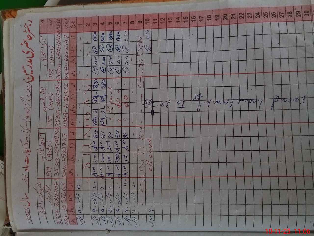 | 35**** | As**** Na**** | PST | Regular | 3 | 0 | 0 | 0 | 0 | 0 | 0 | 0 | 3 | Casual |