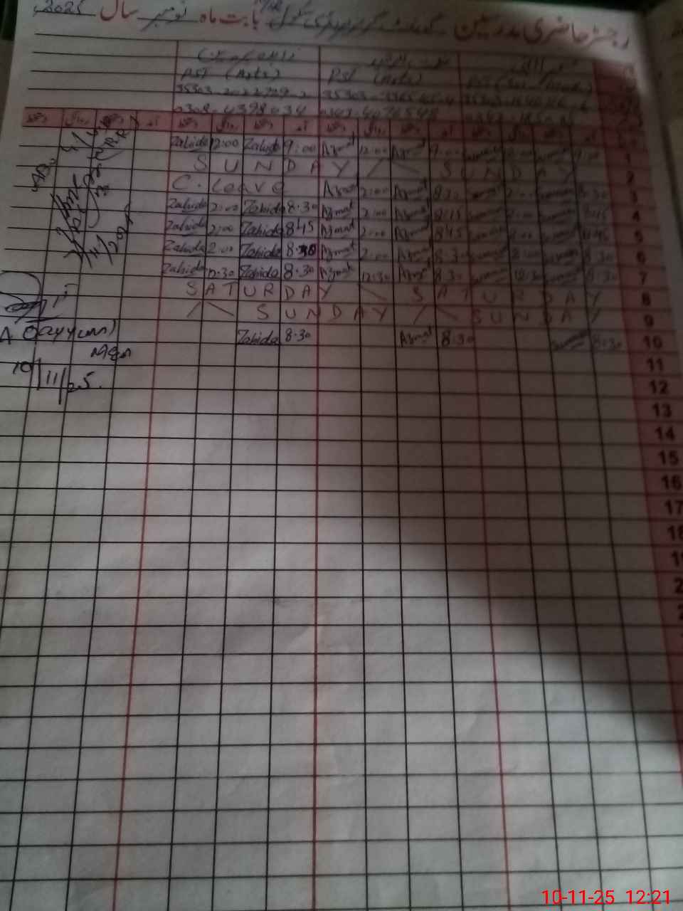 | CNIC | Full Name | Designation | R/C | Absence During Last Calender Month |