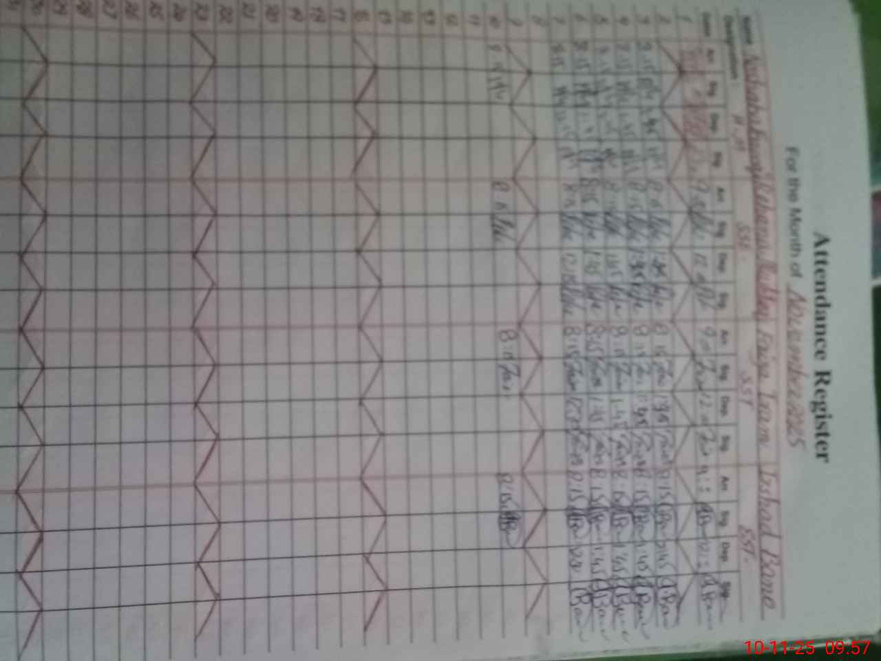 | CNIC | Full Name | Designation | R/C | Absence During Last Calender Month |