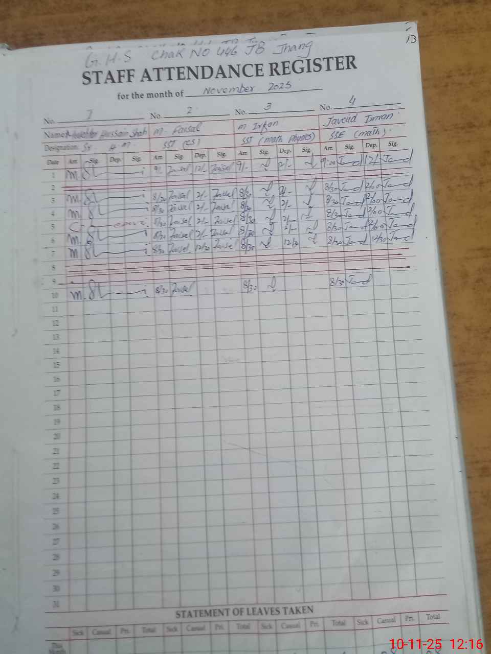 | EMIS Code: 33220021 | Name of School: GHS CHAK NO 446 JB | |||