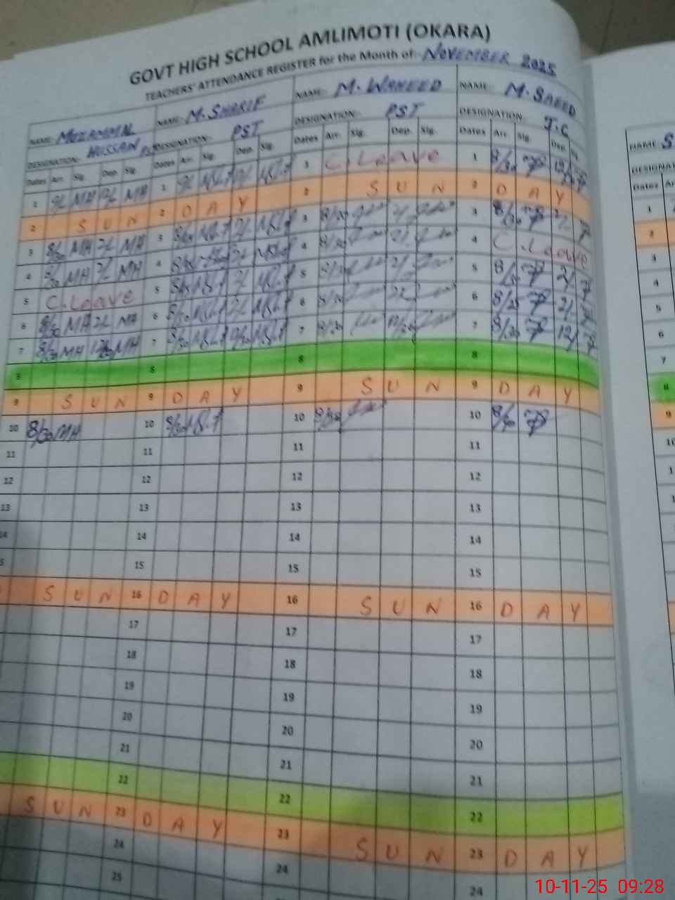 | CNIC | Full Name | Designation | R/C | Absence During Last Calender Month |