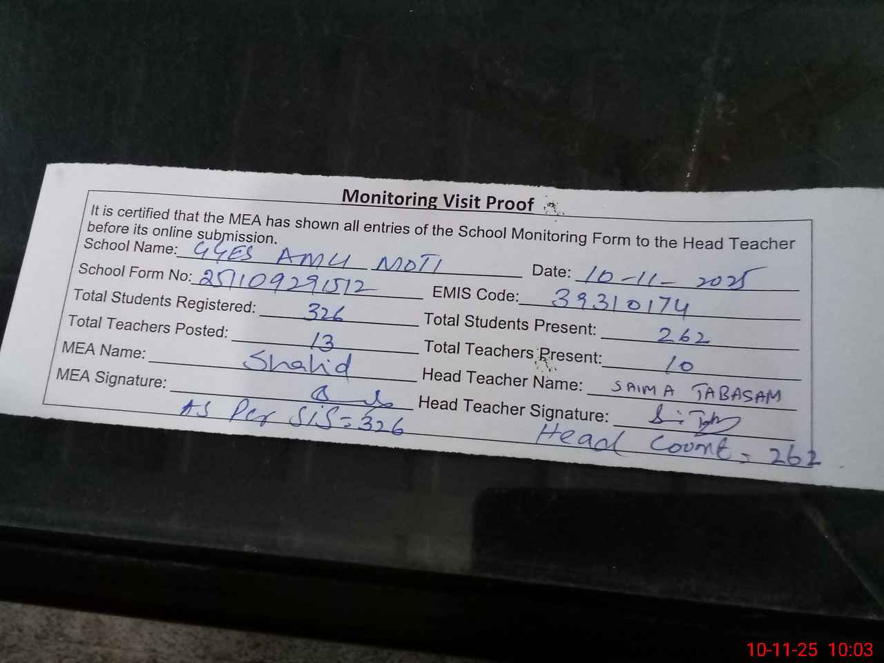 | Monitoring Date: 10-11-2025 | Start Time: 10-11-2025 09:29 AM | End Time: 10-11-2025 10:03 AM | Name of MEA: SH**** YO**** | |