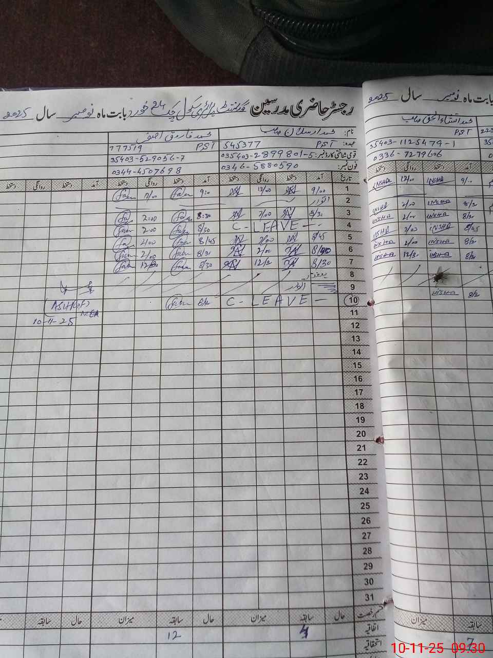 | CNIC | Full Name | Designation | R/C | Absence during last cal. month |