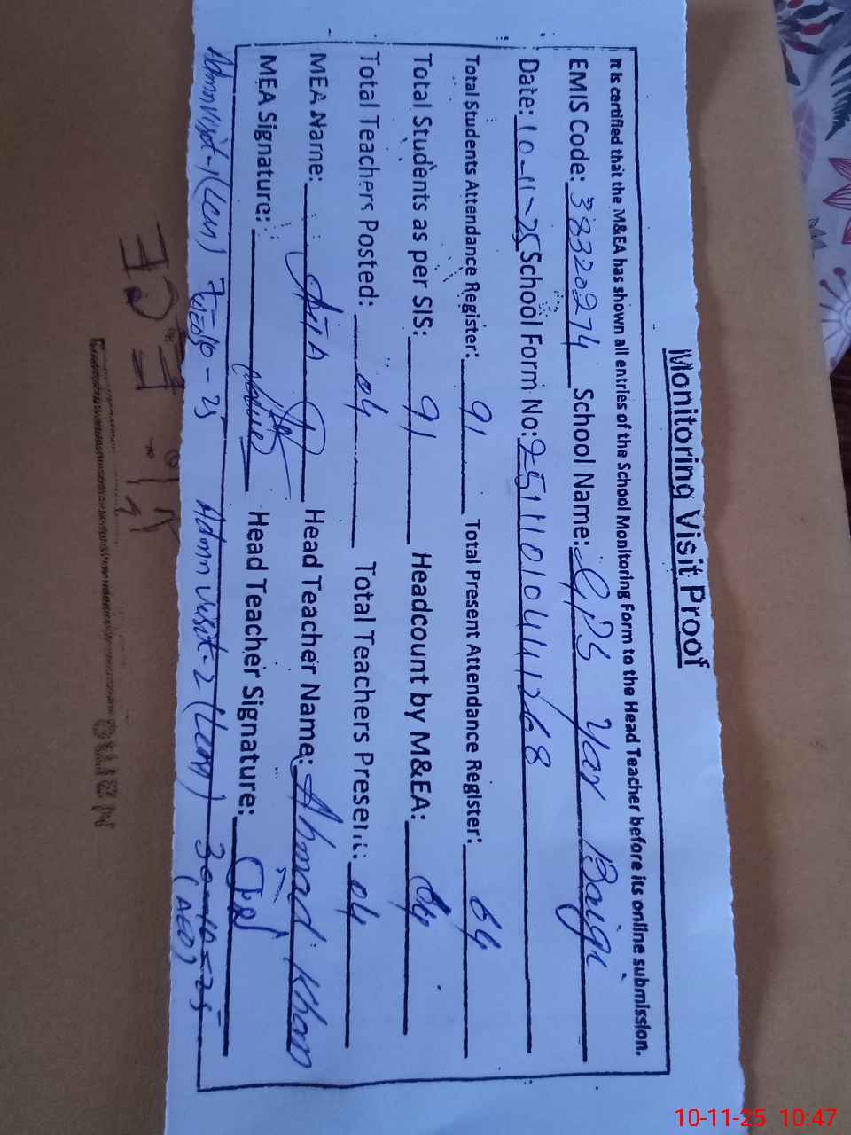 | EMIS Code: 38320274 | Name of School: GPS YAR BAIGI | |||