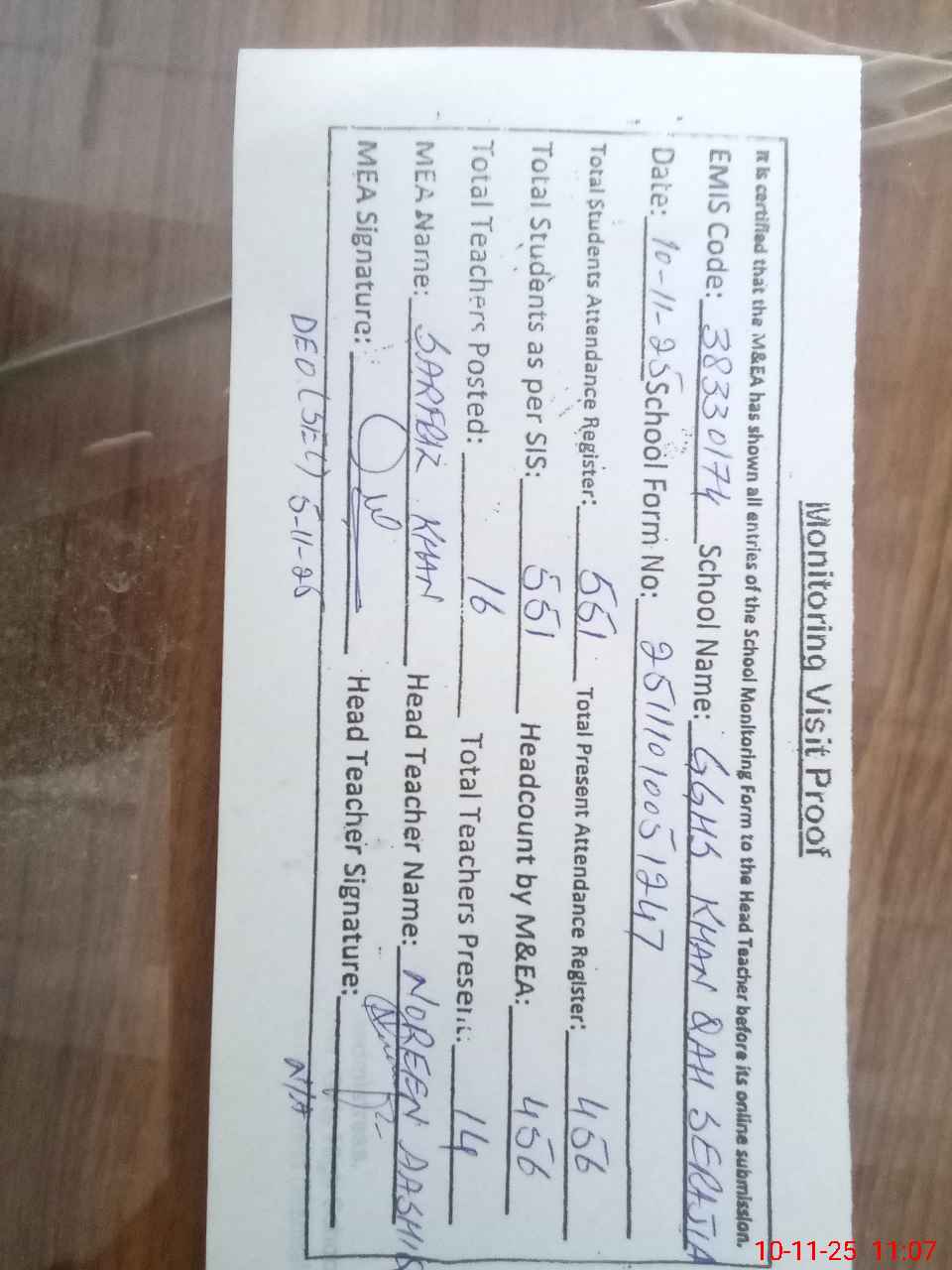 | EMIS Code: 38330174 | Name of School: GGHS KHAN QAH SERAJIA PO WAPDA COLONY KUNDIAN | |||