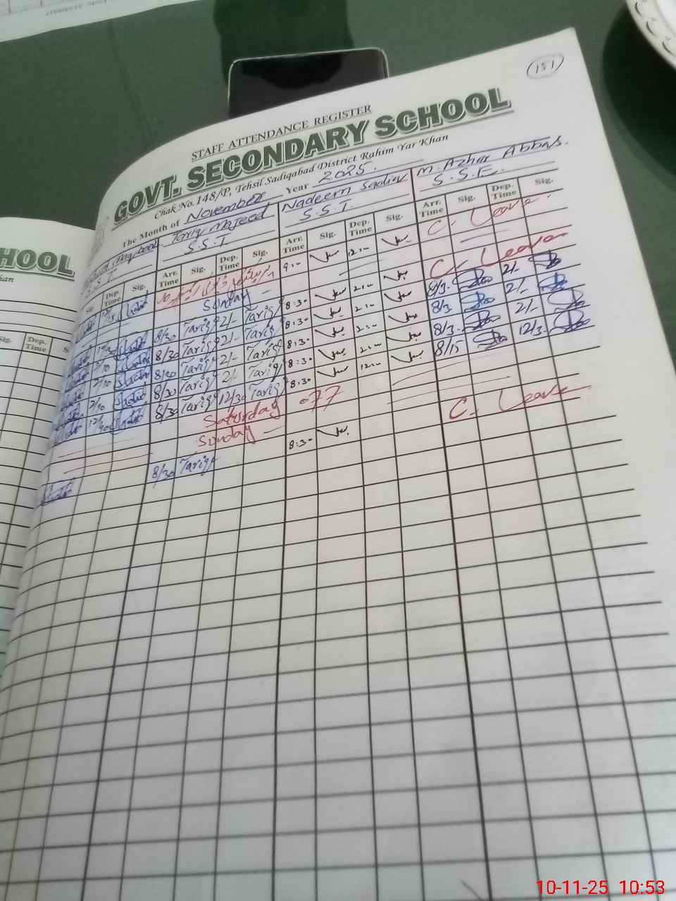 | CNIC | Full Name | Designation | R/C | Absence During Last Calender Month |