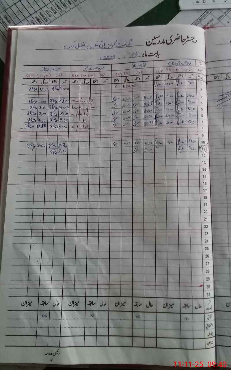 | CNIC | Full Name | Designation | R/C | Absence During Last Calender Month |