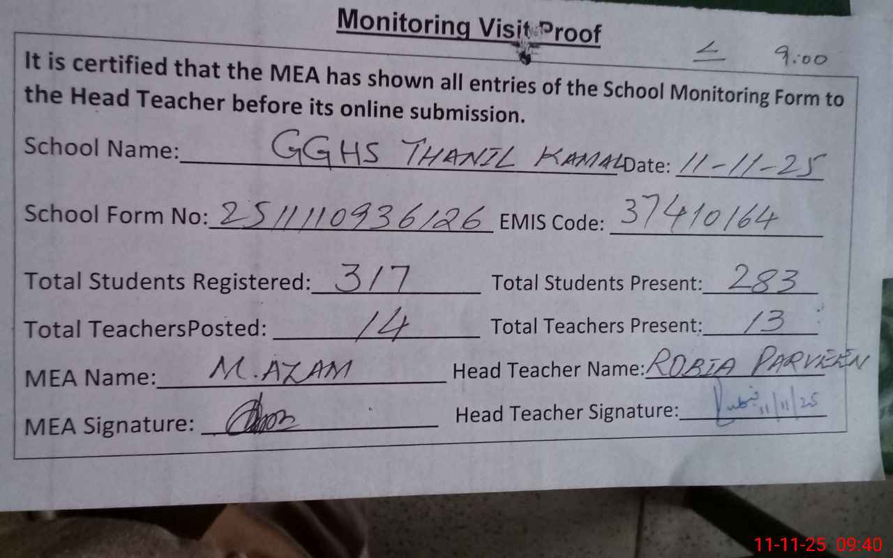 | EMIS Code: 37410164 | Name of School: GGHS THANEEL KAMAL | |||