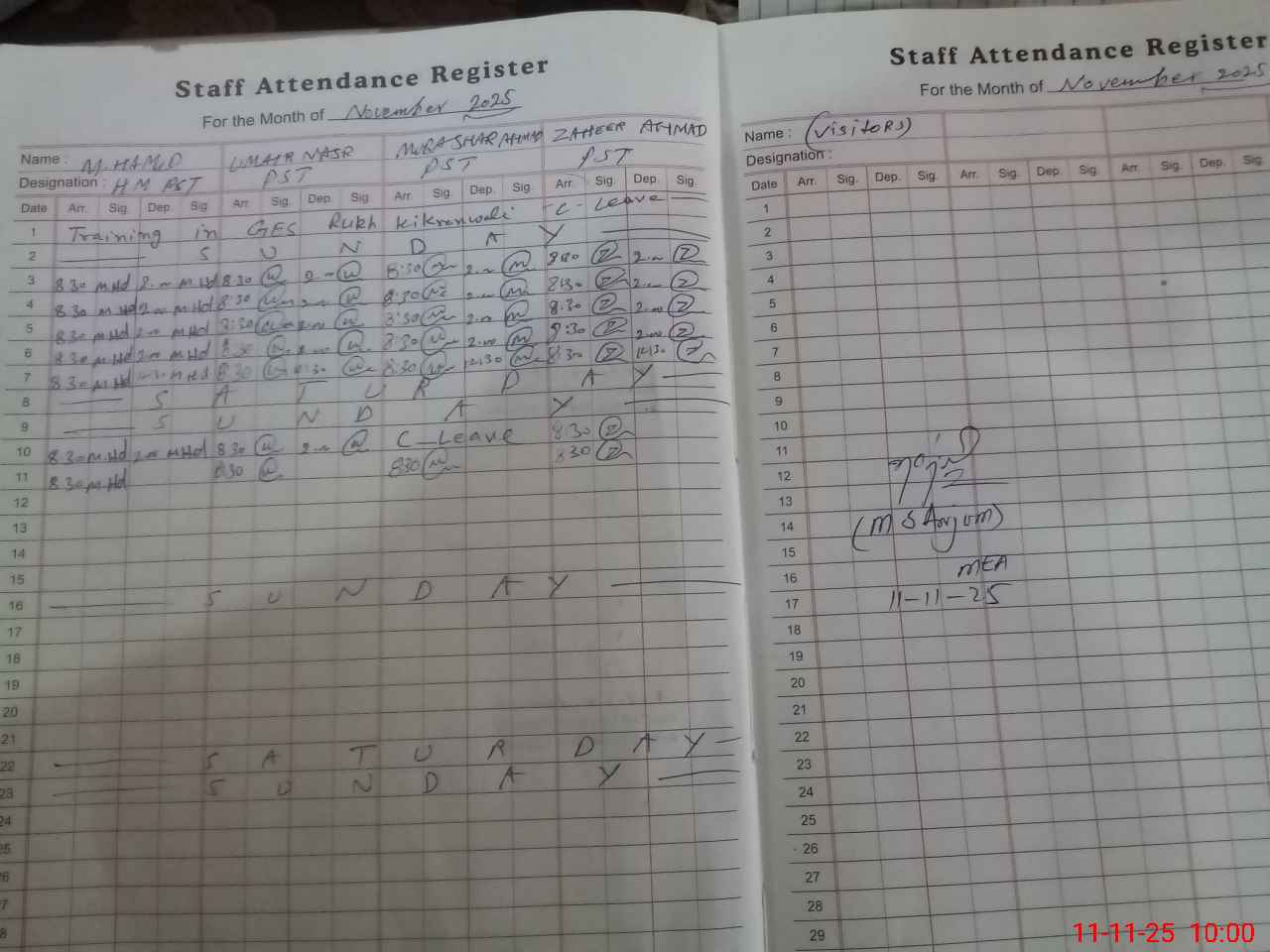 | Monitoring Date: 11-11-2025 | Start Time: 11-11-2025 09:00 AM | End Time: 11-11-2025 10:06 AM | Name of MEA: S-**** Sh**** An**** | |