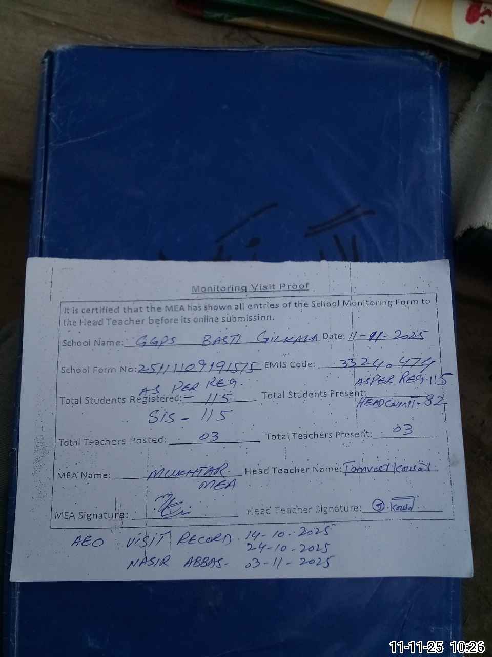 | EMIS Code: 33240474 | Name of School: GGPS BASTI GIL KALA | |||