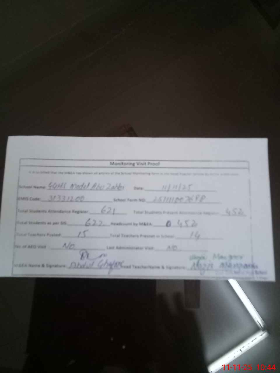 | Monitoring Date: 11-11-2025 | Start Time: 11-11-2025 09:17 AM | End Time: 11-11-2025 10:48 AM | Name of MEA: Ab**** Gh**** | |