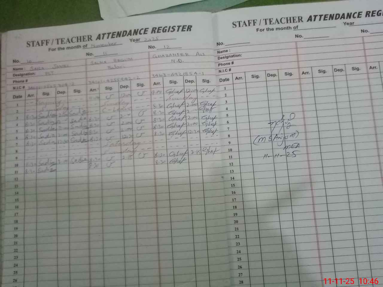 | CNIC | Full Name | Designation | R/C | Absence During Last Calender Month |