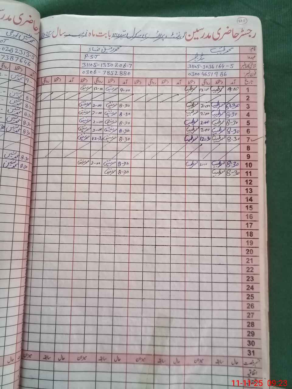 | Name: MU**** Ta**** Designation: (School Headmaster's/Headmistress's) P S T Phone/Cell Number: 03**** |