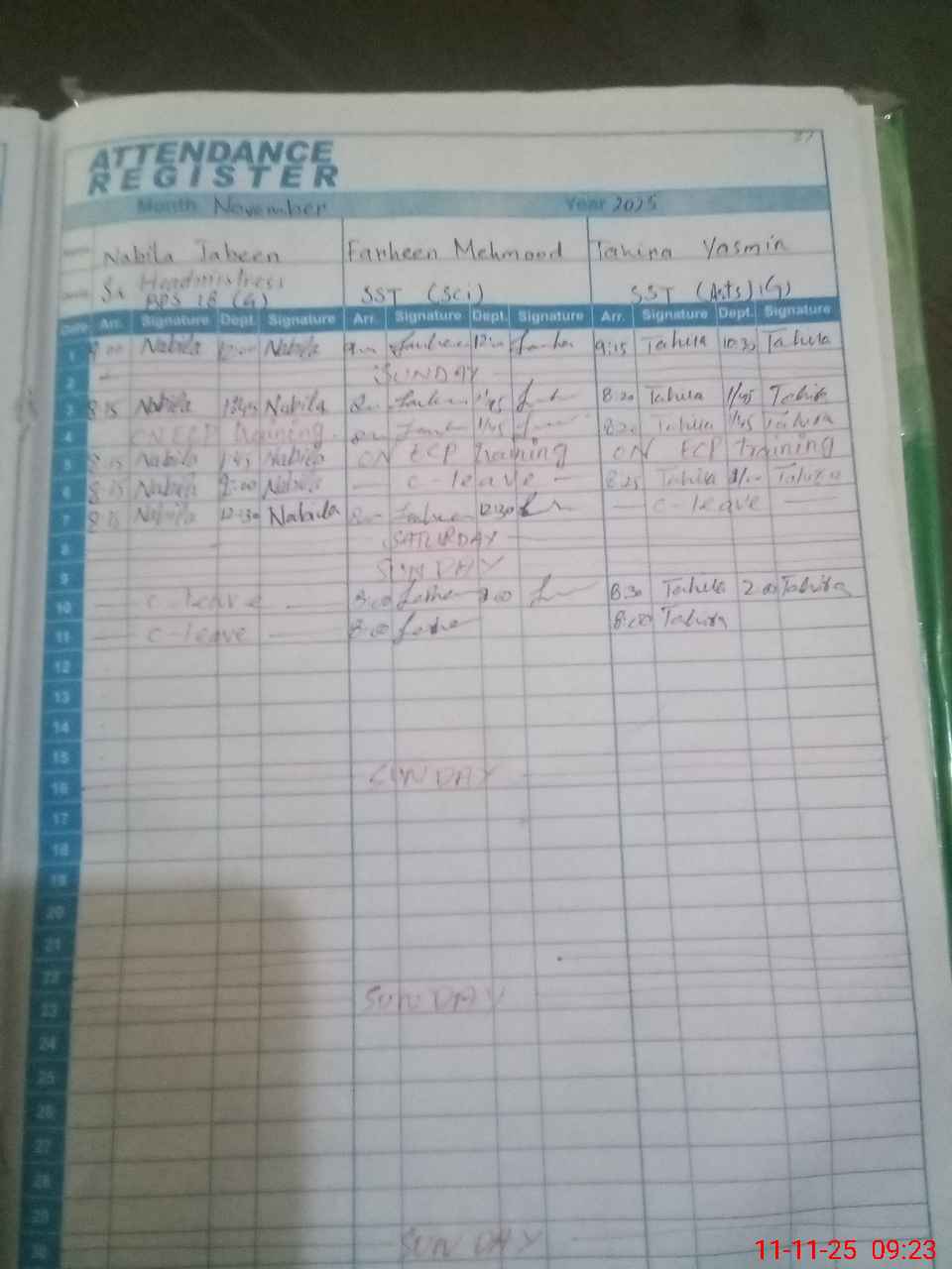 | CNIC | Full Name | Designation | R/C | Absence During Last Calender Month |