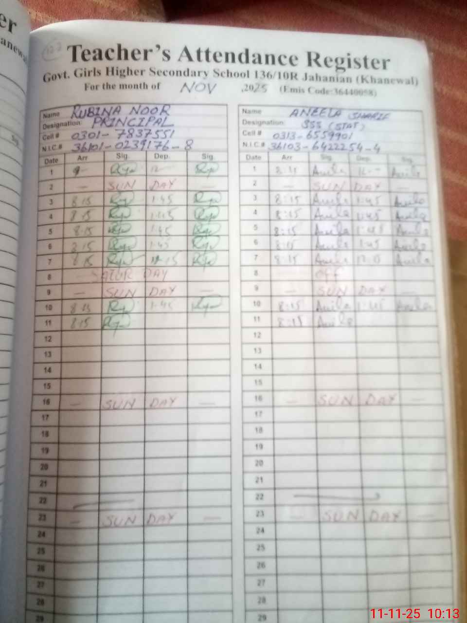 | CNIC | Full Name | Designation | R/C | Absence During Last Calender Month |
