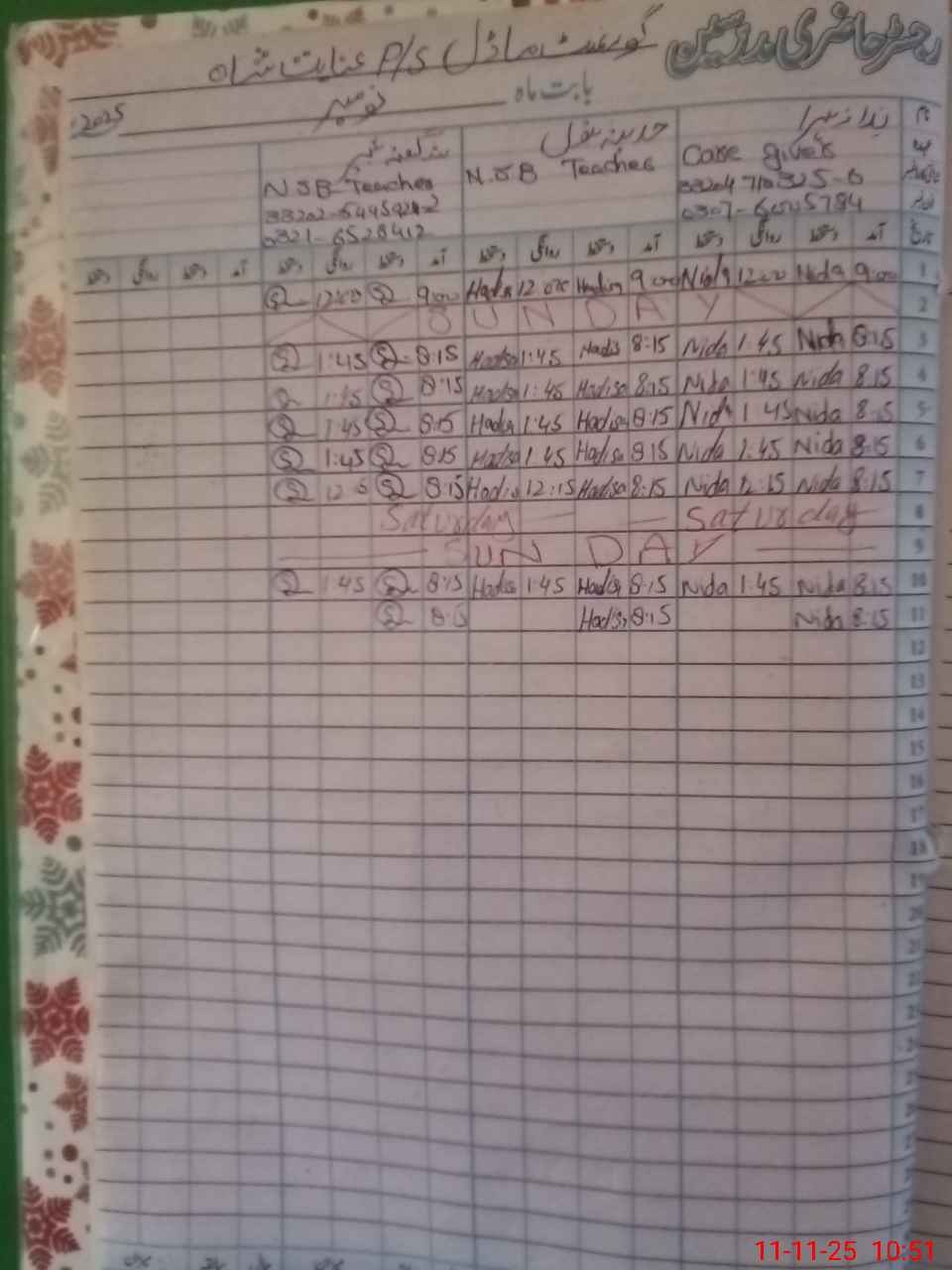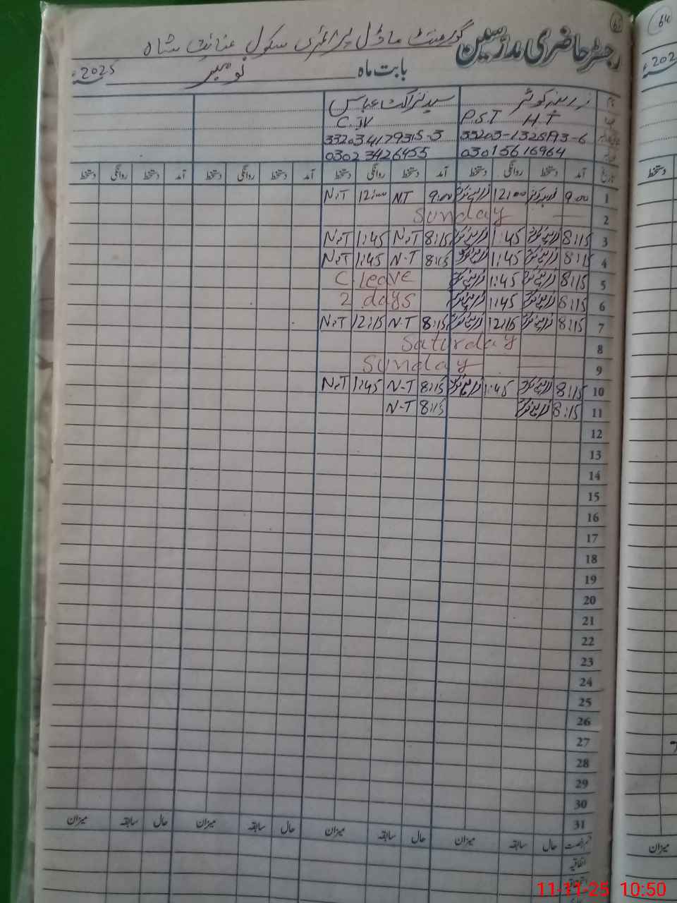 | CNIC | Full Name | Designation | R/C | Absence During Last Calender Month |