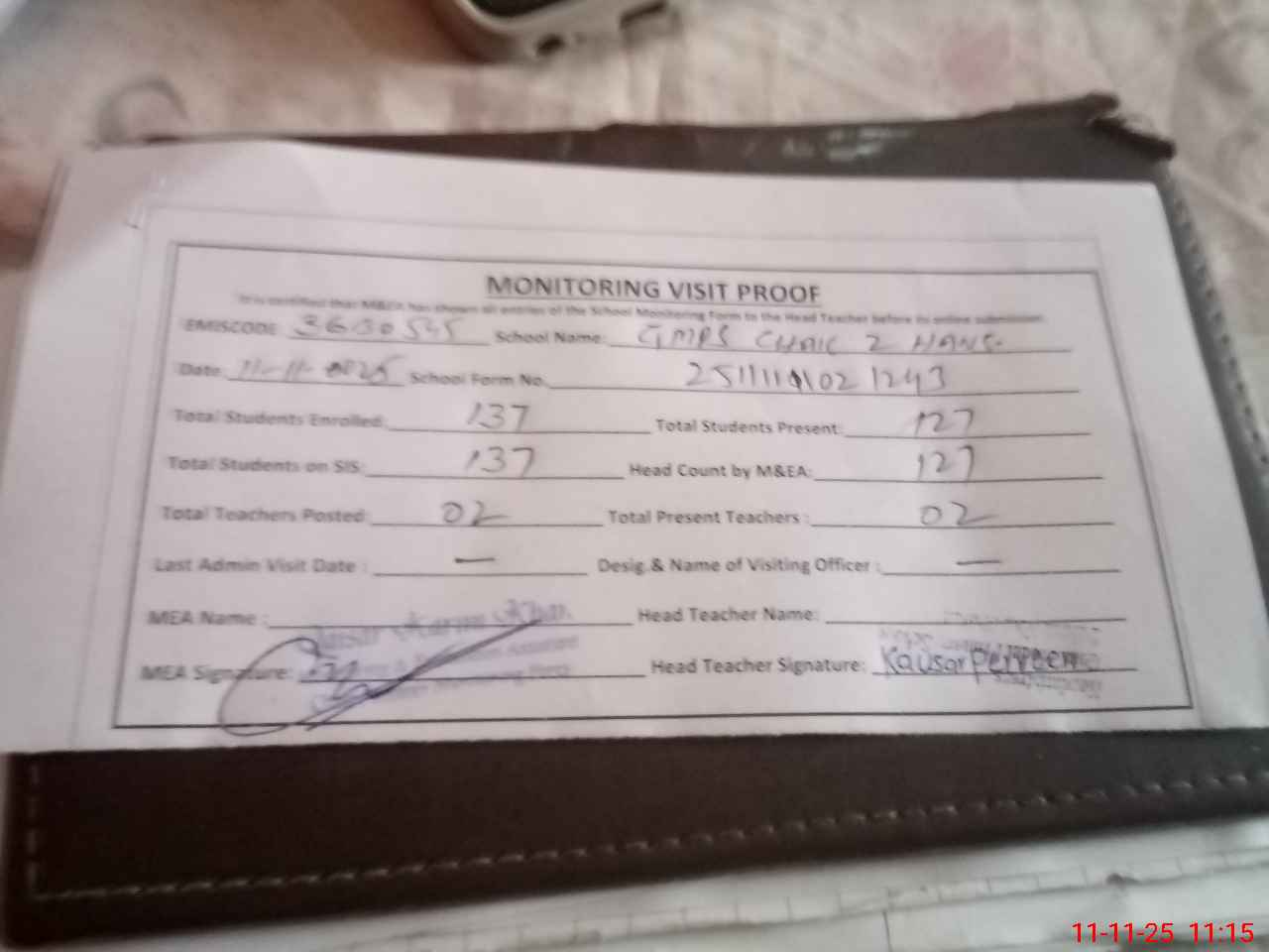 | EMIS Code: 36130545 | Name of School: GMPS CHAK 2-HANS | |||