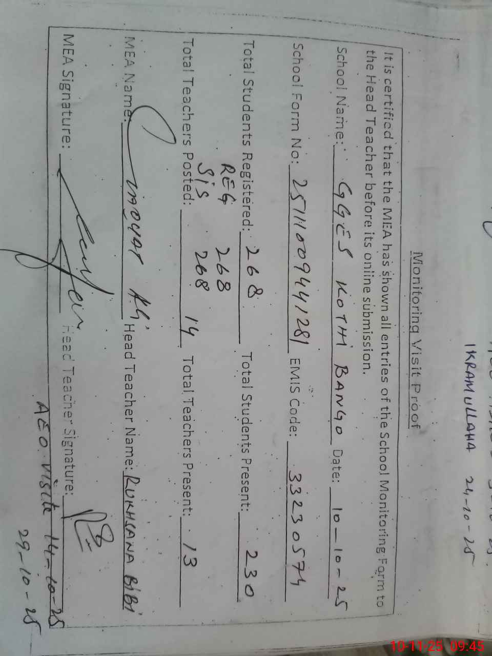 | EMIS Code: 33230574 | Name of School: GGES KOTHI SULTAN MAHMOOD BHANGOO | |||