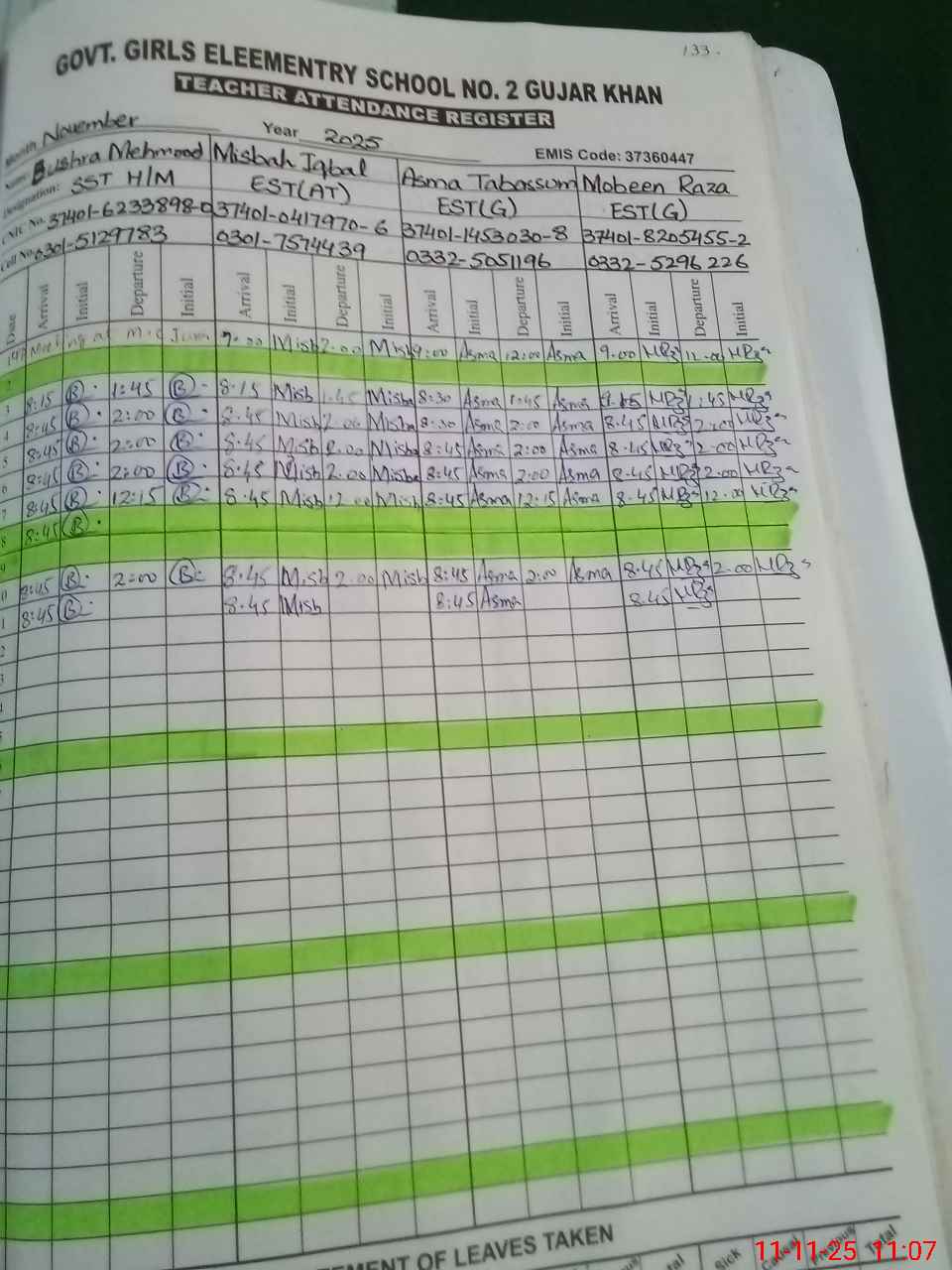 | Monitoring Date: 11-11-2025 | Start Time: 11-11-2025 10:50 AM | End Time: 11-11-2025 11:20 AM | Name of MEA: Kh**** Ri**** | |