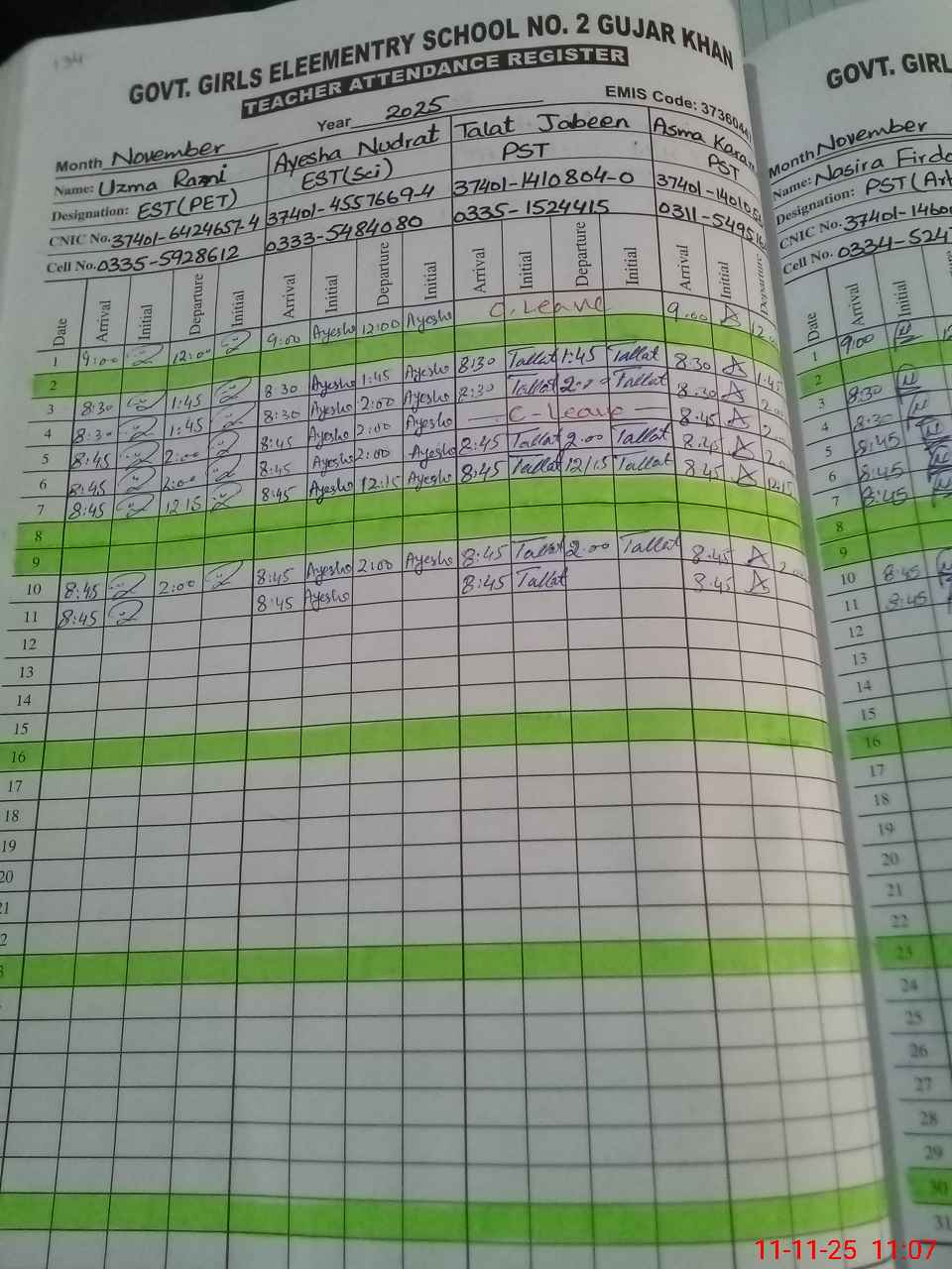 | CNIC | Full Name | Designation | R/C | Absence During Last Calender Month |