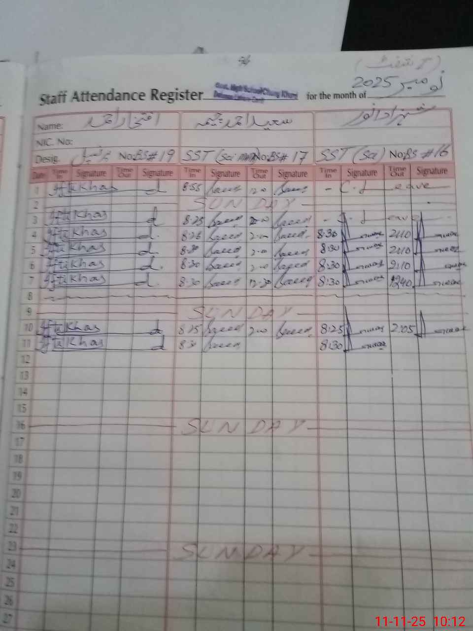 | 35**** | Ab**** Hu**** | Regular | 0 | 0 | 0 | 0 | 0 | 0 | 0 | 0 | 0 | Exam Duty | |