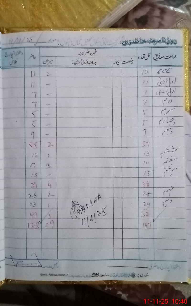 | Total Students Present | 11 | 0 | 11 | 7 | 7 | 5 | 5 | 9 | 12 | 7 | 15 | 26 | 23 | 138 | ||