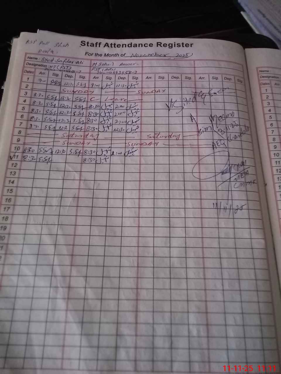 | Monitoring Date: 11-11-2025 | Start Time: 11-11-2025 11:09 AM | End Time: 11-11-2025 11:37 AM | Name of MEA: K-**** Ak**** | |