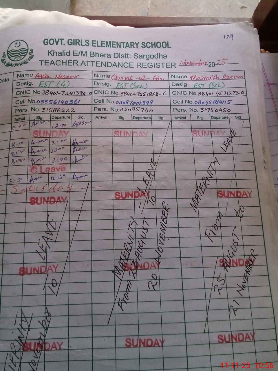 | 38**** | Sa**** Iq**** | Regular | 31 | 0 | 0 | 31 | 0 | 0 | 0 | 0 | 0 | Maternity | |