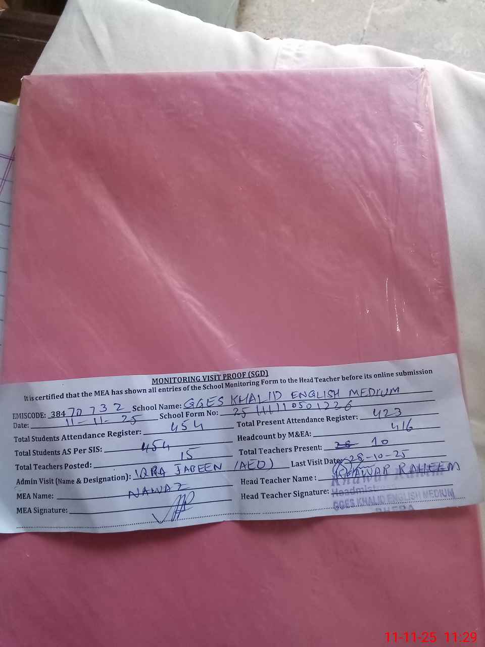| Attendance Register | Head Teacher | MEA with School | Visit Proof |