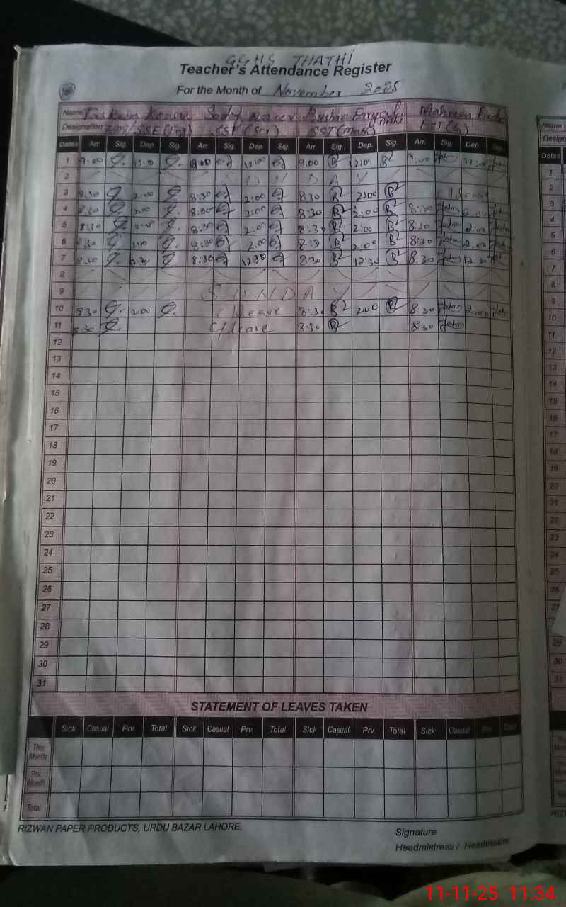 | CNIC | Full Name | Designation | R/C | Absence During Last Calender Month |