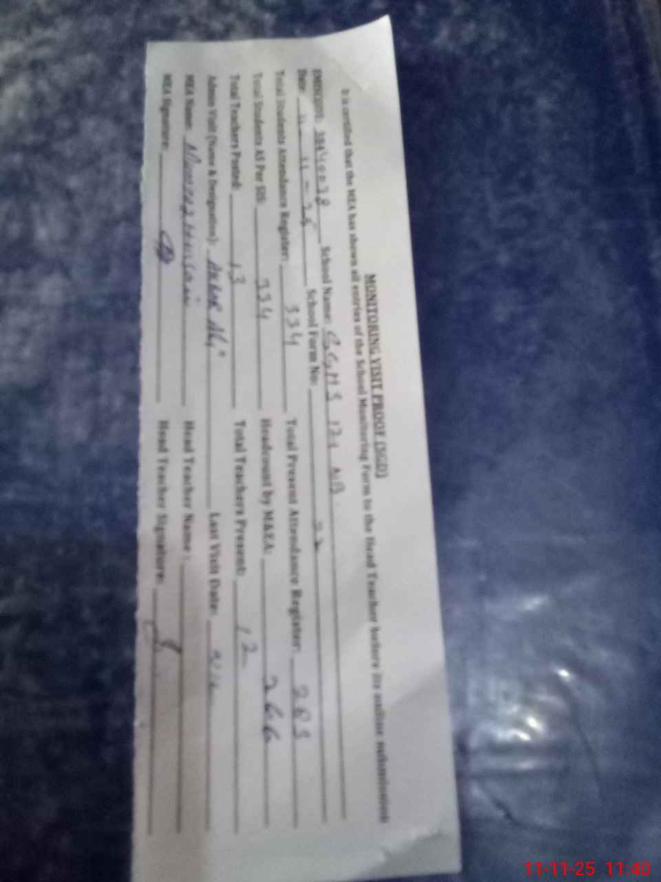 | Attendance Register | Head Teacher | MEA with School | Visit Proof |