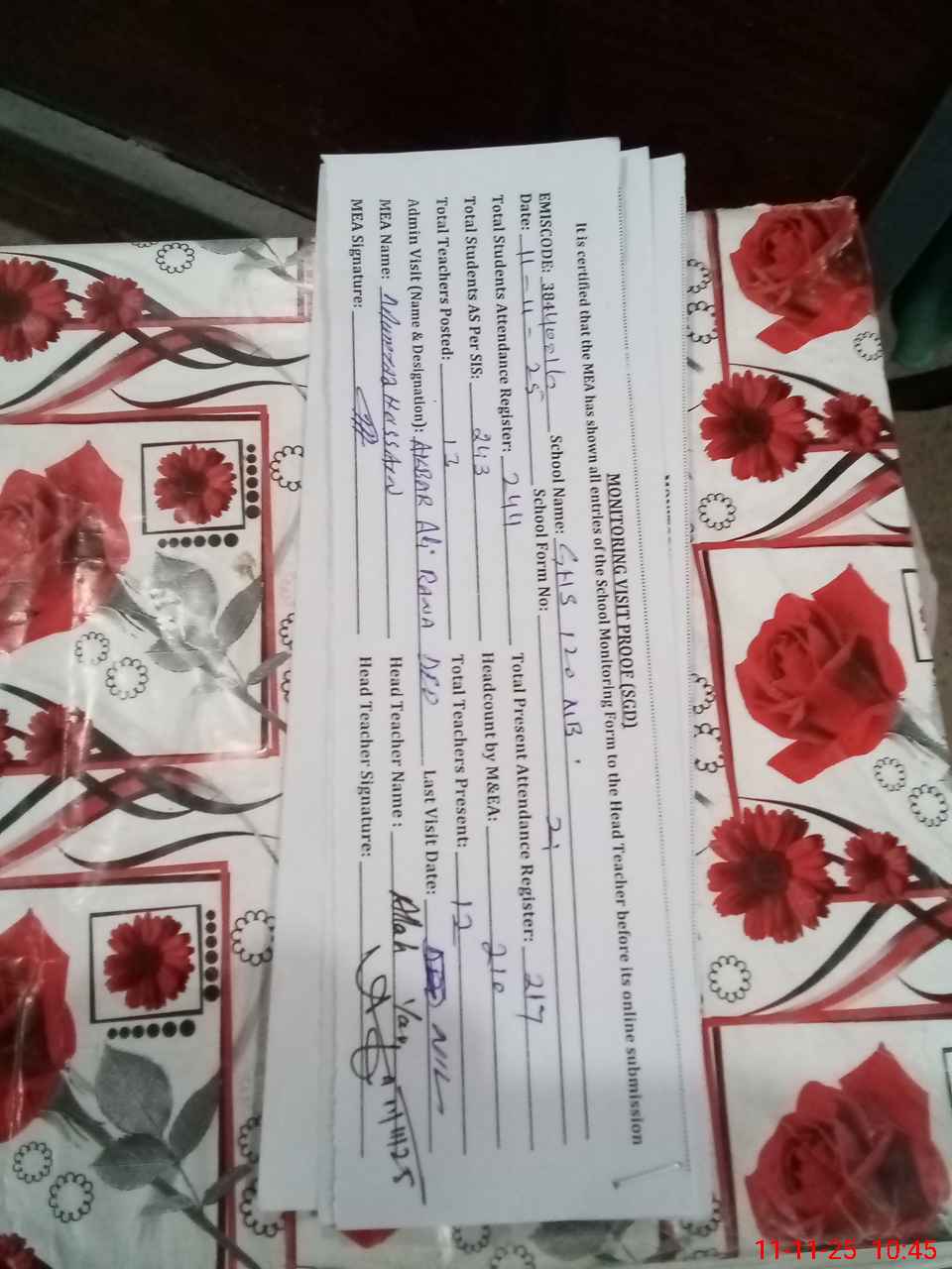 | Attendance Register | Head Teacher | MEA with School | Visit Proof |