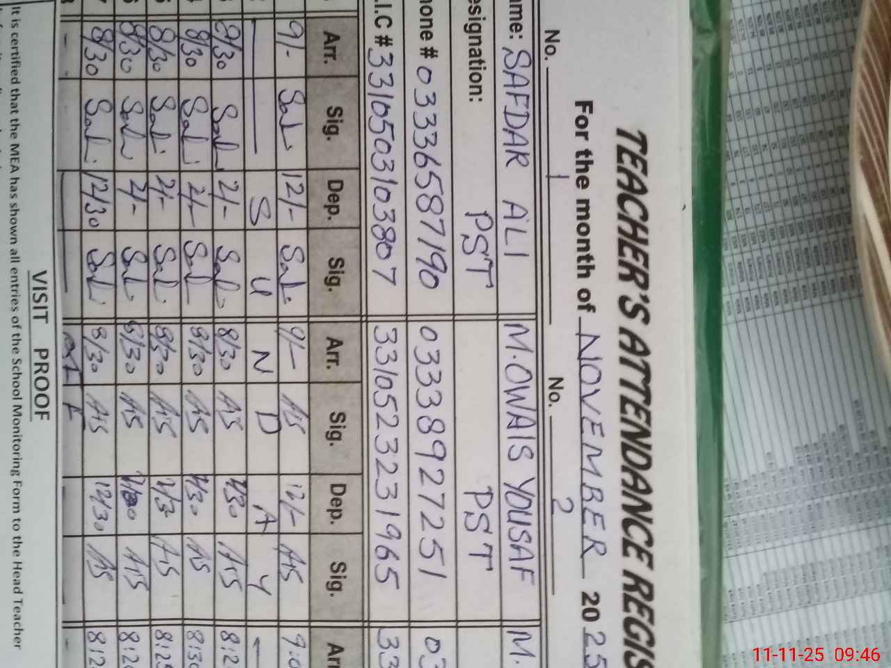 | Name: SA**** AL**** Designation: (School Headmaster's/Headmistress's) PST Phone/Cell Number: 03**** |