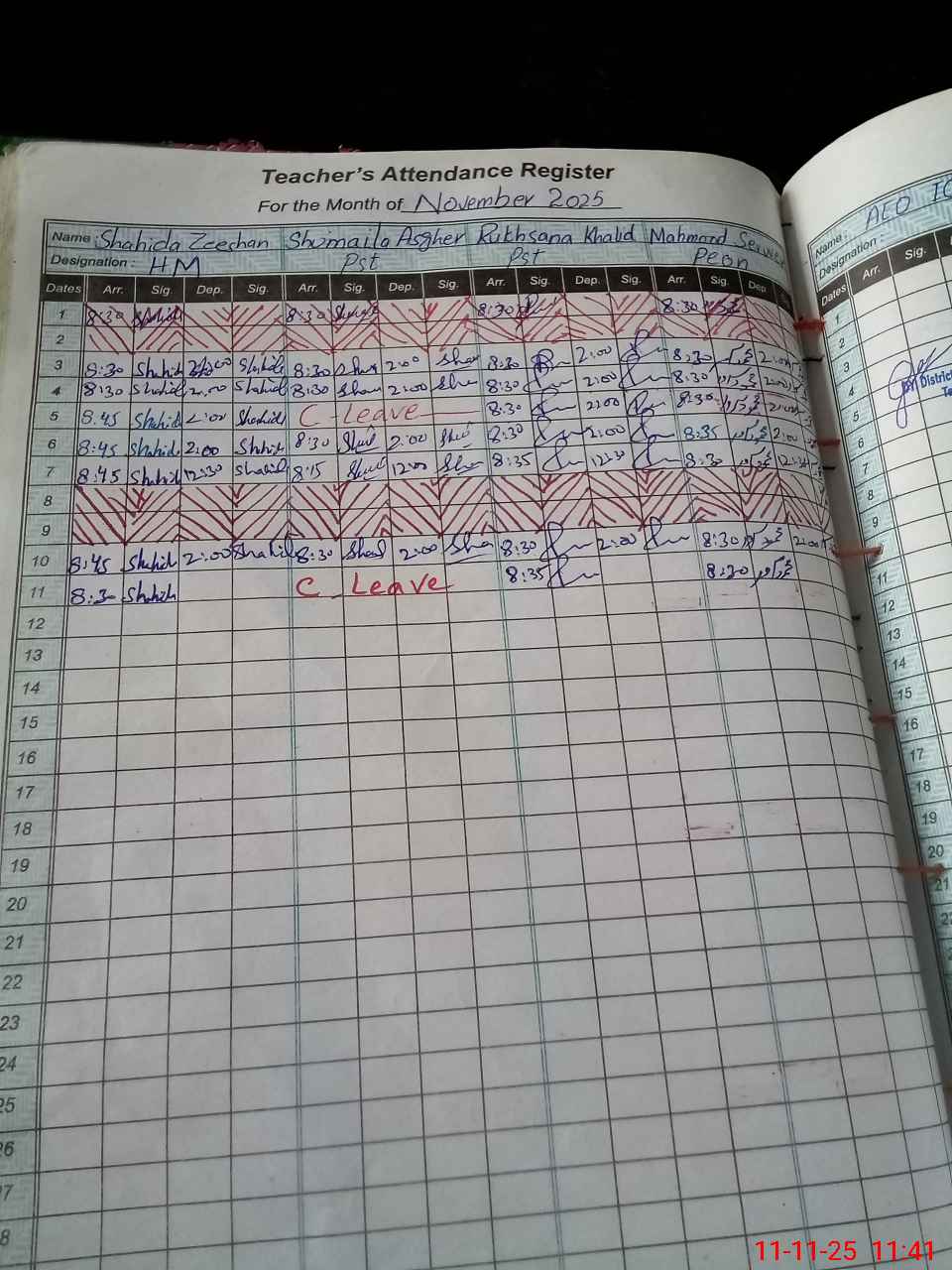 | Name: Sh**** Ze**** Designation: (School Headmaster's/Headmistress's) PST Phone/Cell Number: 03**** |